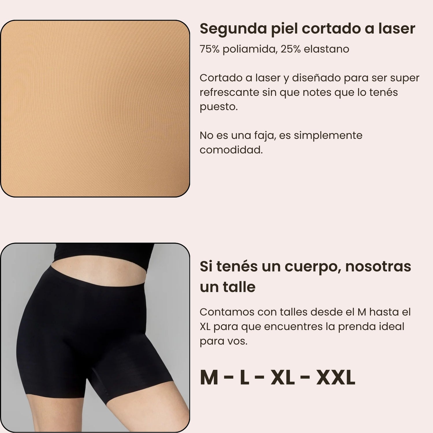 Nota: La modelo en las fotos usa el talle XL / 2XL delShort Protector Segunda Piel y mide 1,67m